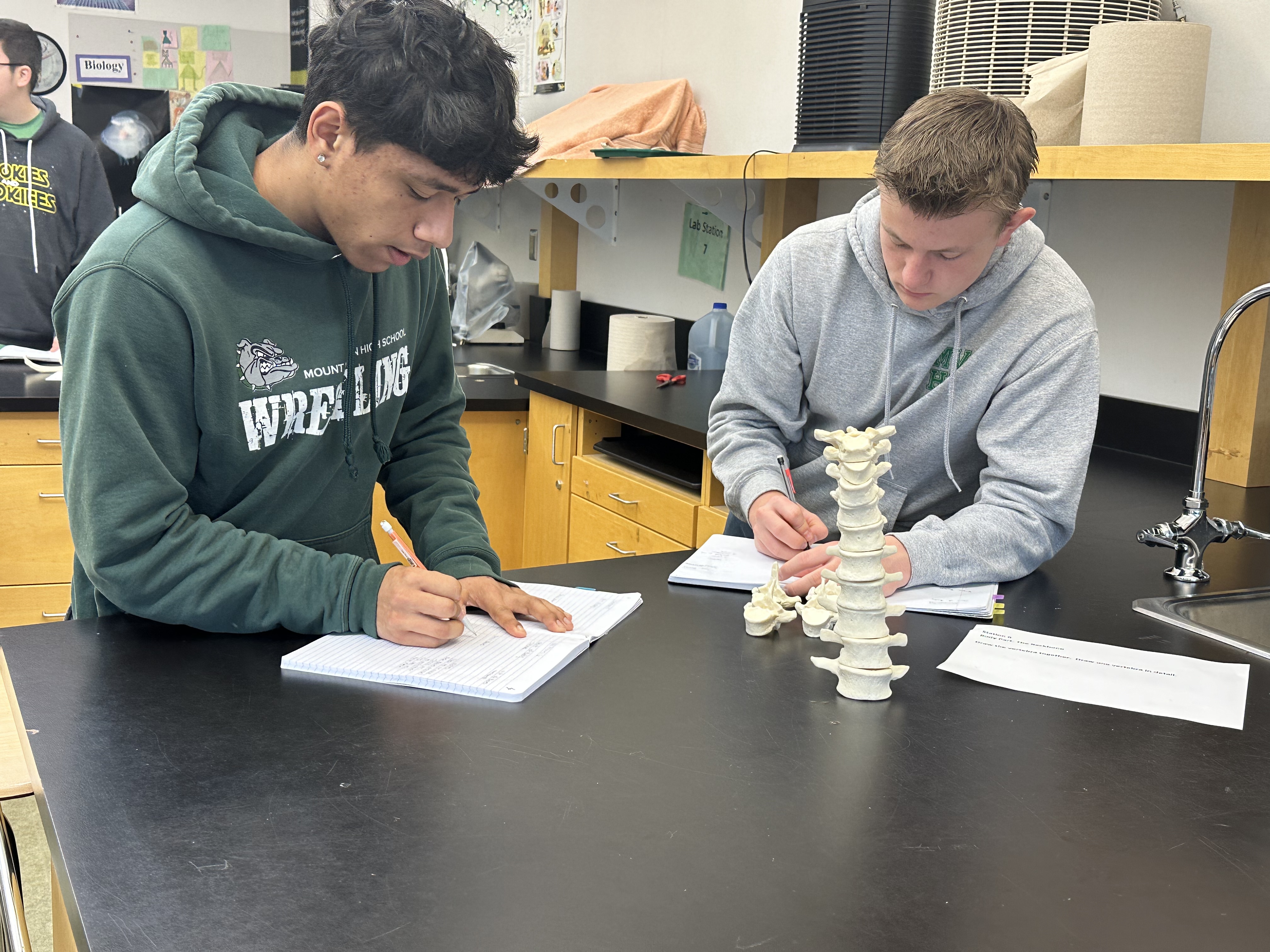 This morning, I visited Heather Farren's Science class at the high school. I was impressed to observe students engaged in hands-on activities with human bones as part of their coursework and taking notes in the lab notebook! Here's a snapshot of our students immersed in learning. Thank you Heather for the invitation to visit your classroom!