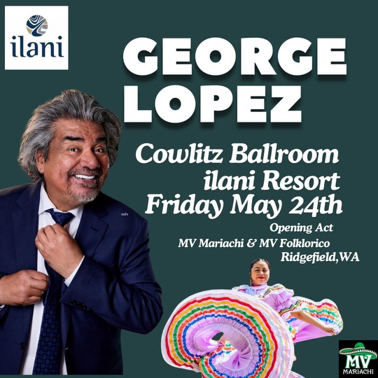 ¡No te lo pierdas! El Mariachi y Folklórico de MVHS abrirán para el mundialmente famoso comediante George López mañana, viernes 24 de mayo en el Ilani Resort en Ridgefield Washington.