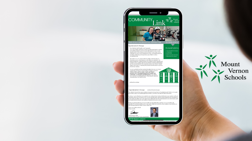 Here is a copy of the End of Year Community Link. Inside, you'll find highlights of the incredible events and achievements in our district, as well as information about summer activities. I hope you take a moment to read through it.